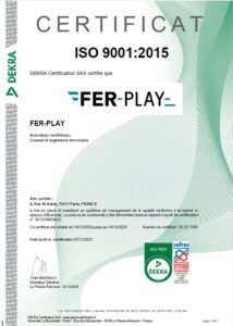 🚅 L’obtention de la certification ISO 9001 est une étape clé dans le développement et la structuration de FER-PLAY.