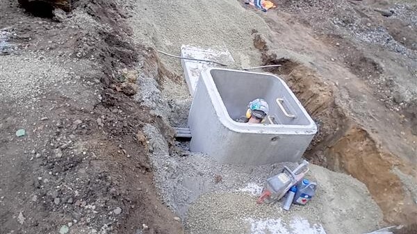 La complexité était dans l’environnement de travail : un ouvrage sous voie traverse la plateforme ferroviaire en remblai et la voie ferrée passant dans la forêt.